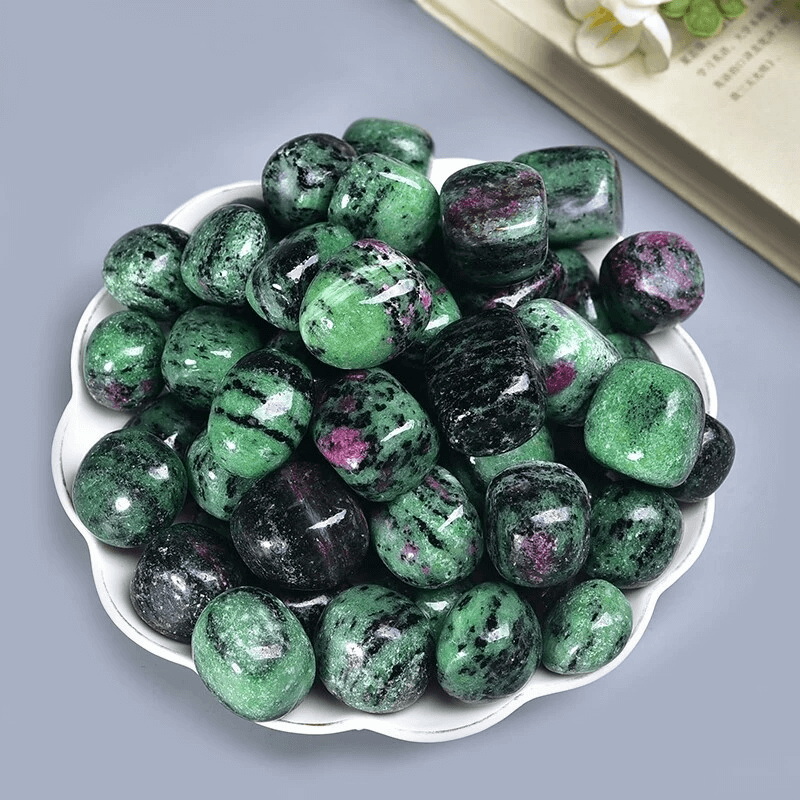 Ruby Zoisite harmonizes the heart and mind, promoting courage and vitality. Its vibrant mix of green and pink encourages emotional balance and personal growth.